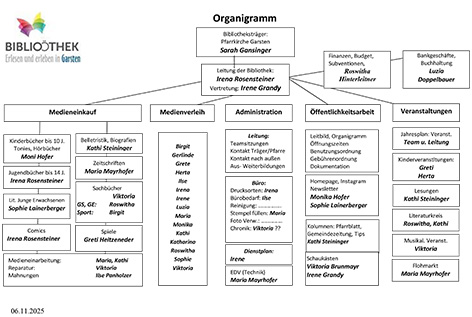 Organigramme Organigramm der Bibliothek Garsten 2026 Umfeldorganiramm: Mit diesen Partnerinnen und Partnern sind wir in kontinuierlichem Austausch: